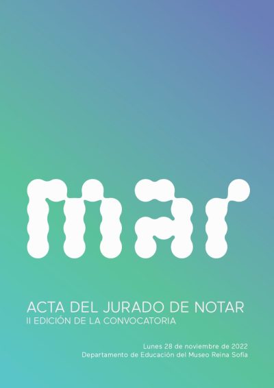 Este acta recoge el desarrollo del jurado de la 2º edición de la convocatoria del programa de residencias NOTAR. MAR es una plataforma que apuesta por otras formas de institucionalidad cultural, más permeables y dialogantes: de ahí nace el deseo de poner en abierto este acta, entendiendo este gesto como una apuesta por la transparencia y una oportunidad para el aprendizaje.