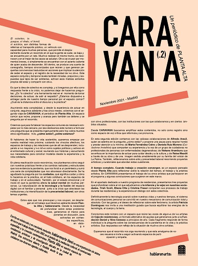 Caravana es el periódico de Planta Alta, espacio de residencias artísticas de hablarenarte que, a modo de archivo de los procesos que allí suceden, reúne las experiencias, debates y acciones de las personas que lo habitan.
